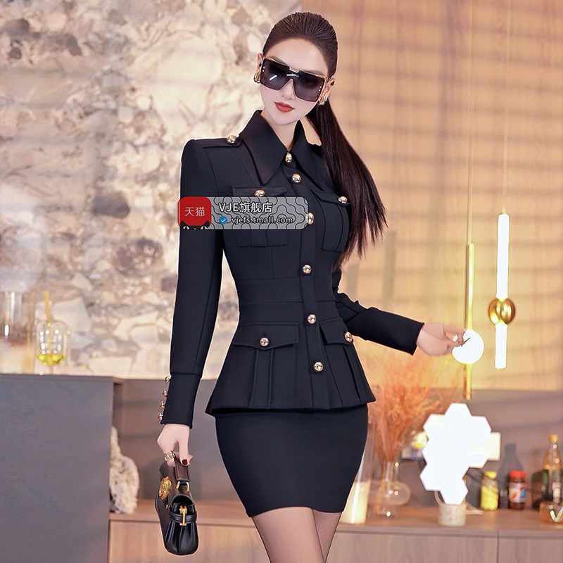 风长袖 春季 工装 2025新款 上衣包臀裙两件套 英伦风设计感套装