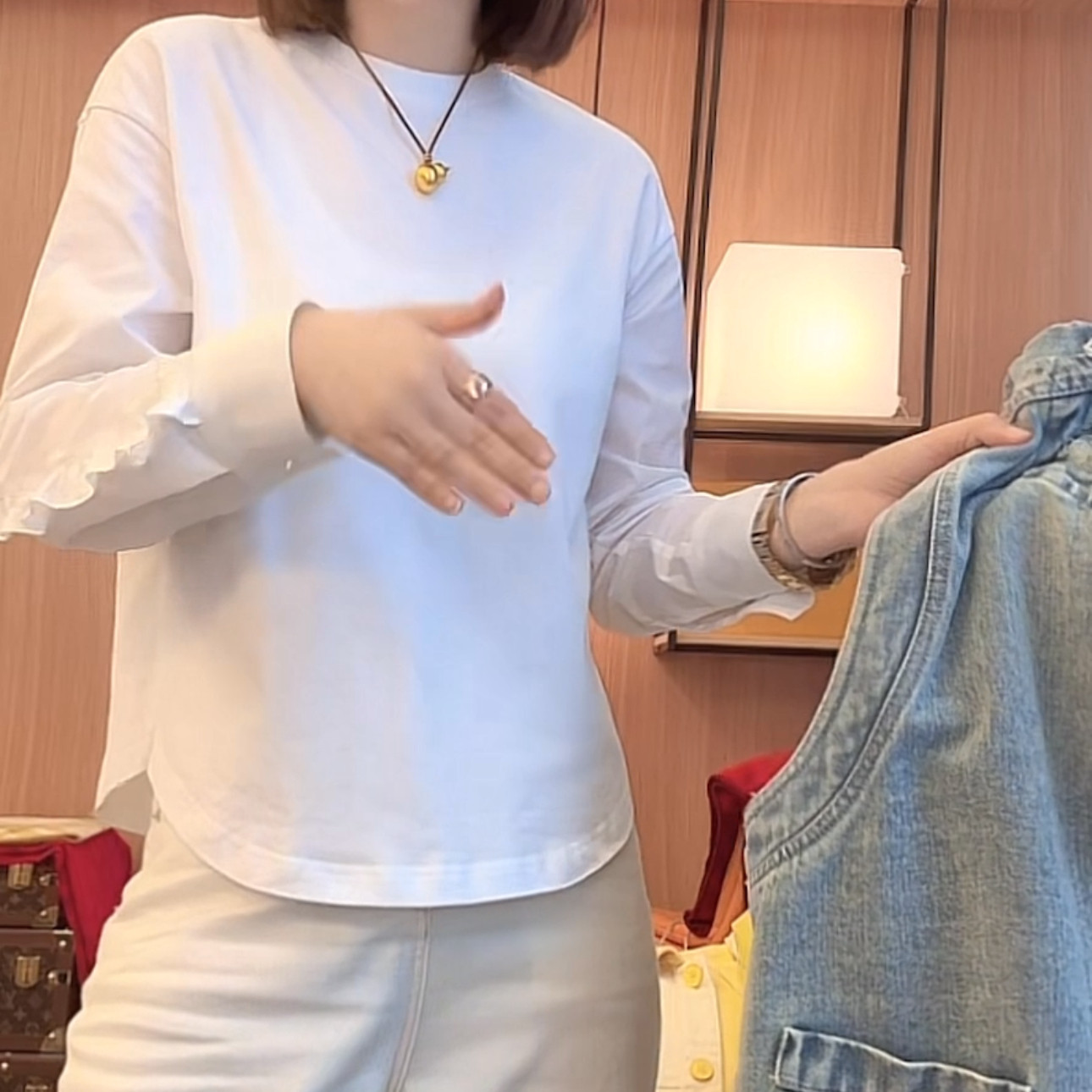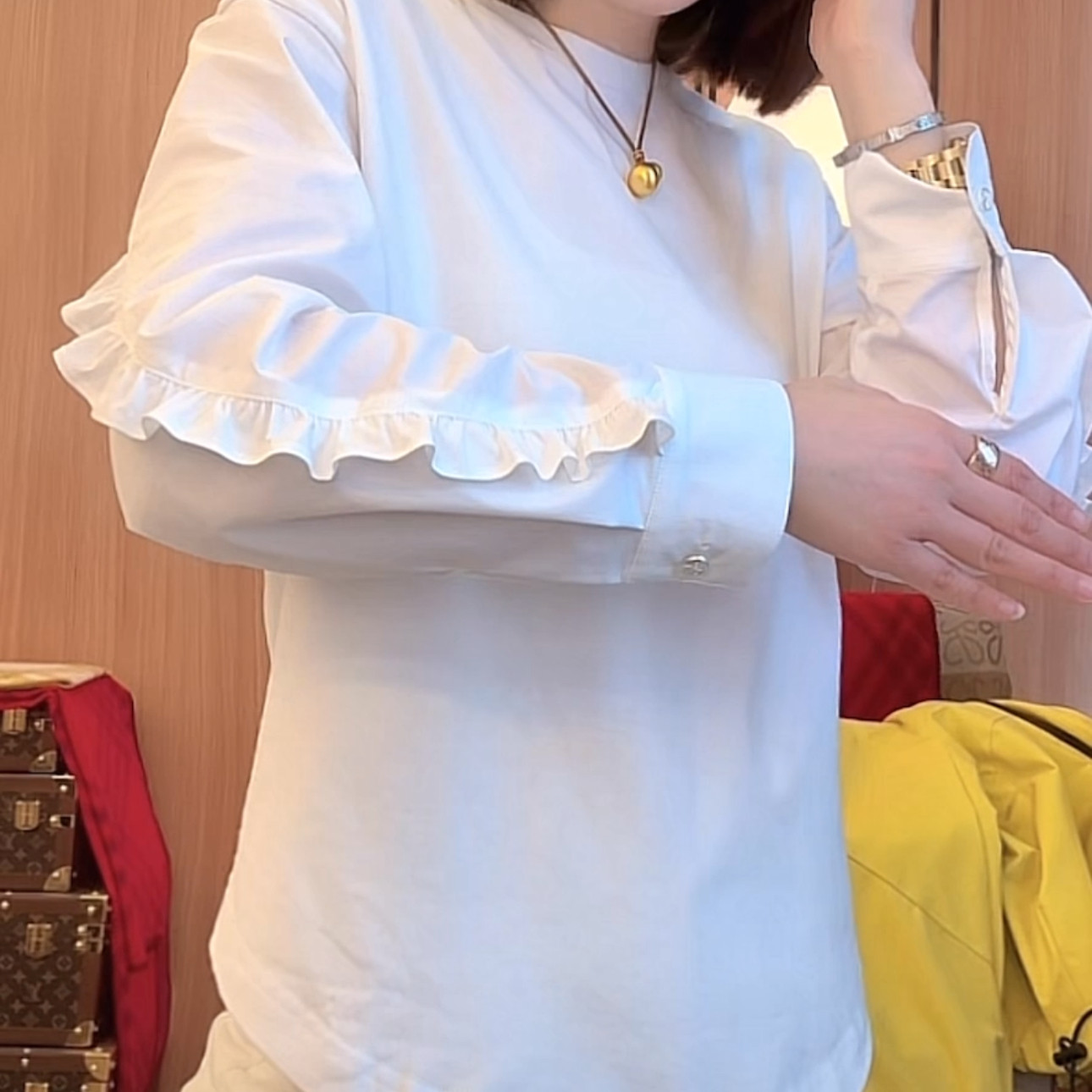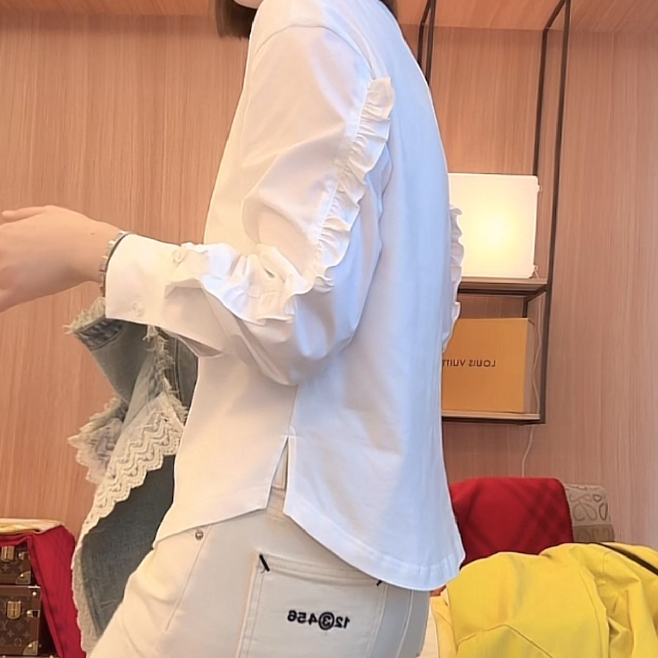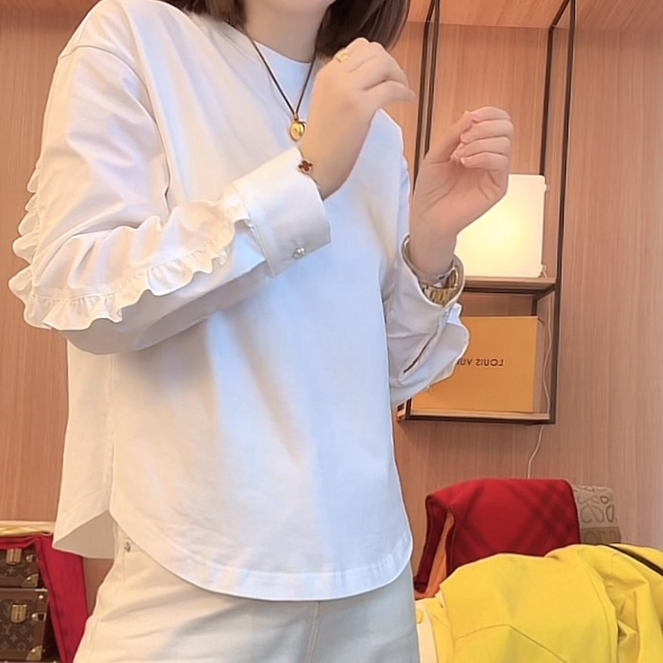 时尚 新款 休闲简约百搭上衣ins T恤女2025春季 高级感木耳边拼接长袖