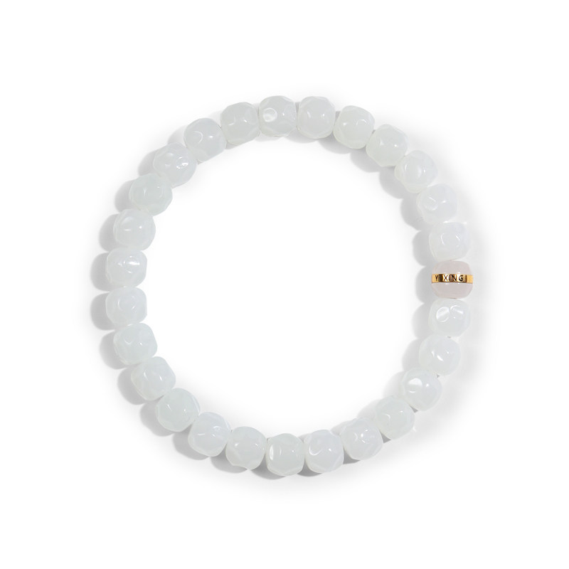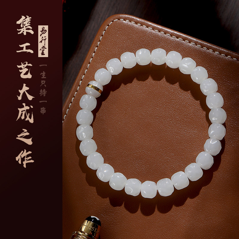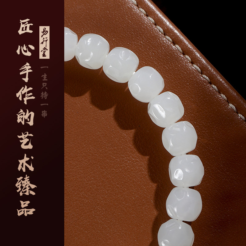 易行堂和田玉手串月蚀白玉无相温润脂白镯心料文玩单圈珠宝手链男