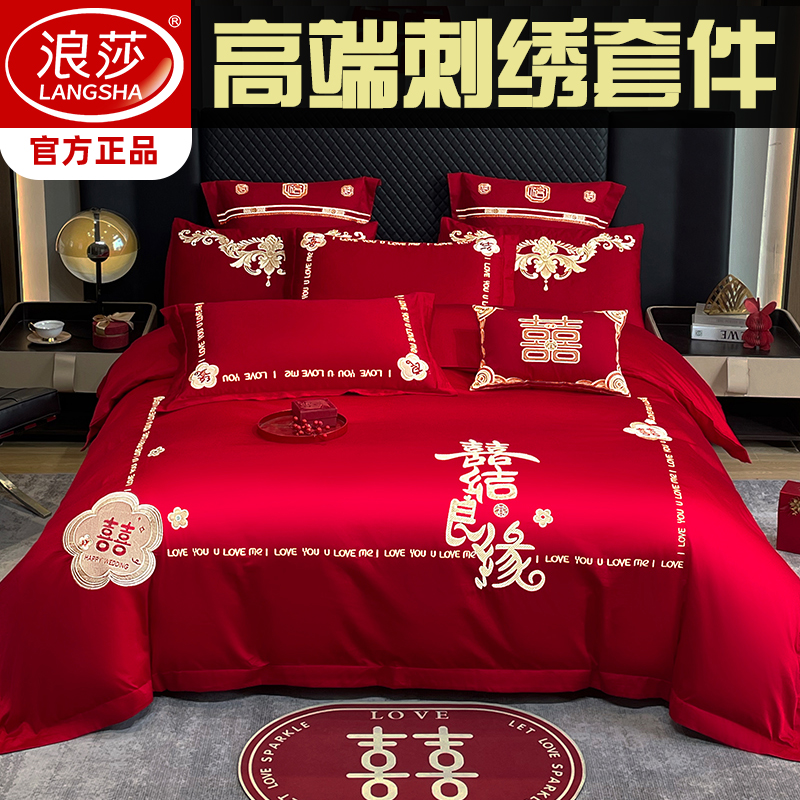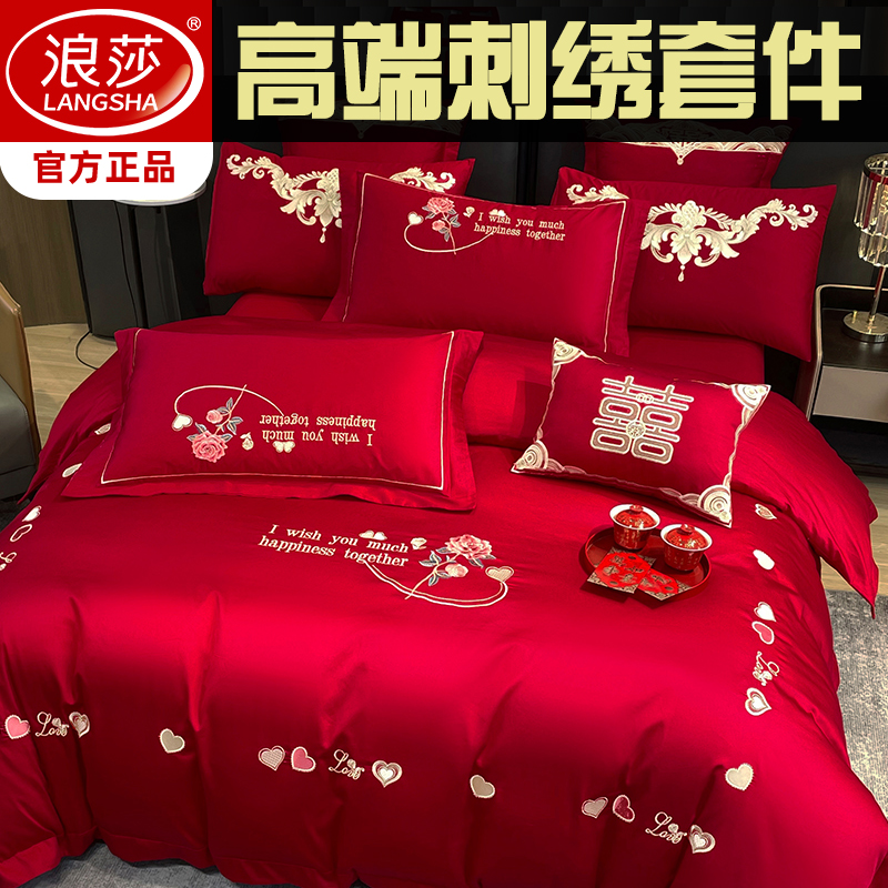 婚庆四件套婚嫁新婚床品刺绣被套红色结婚礼婚房婚床喜庆绣花套件