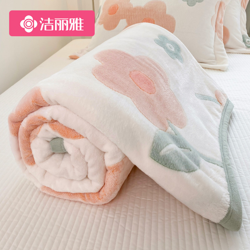 洁丽雅珊瑚绒毛毯被子午休盖毯加厚冬季 午睡毯办公室小毯子床上用