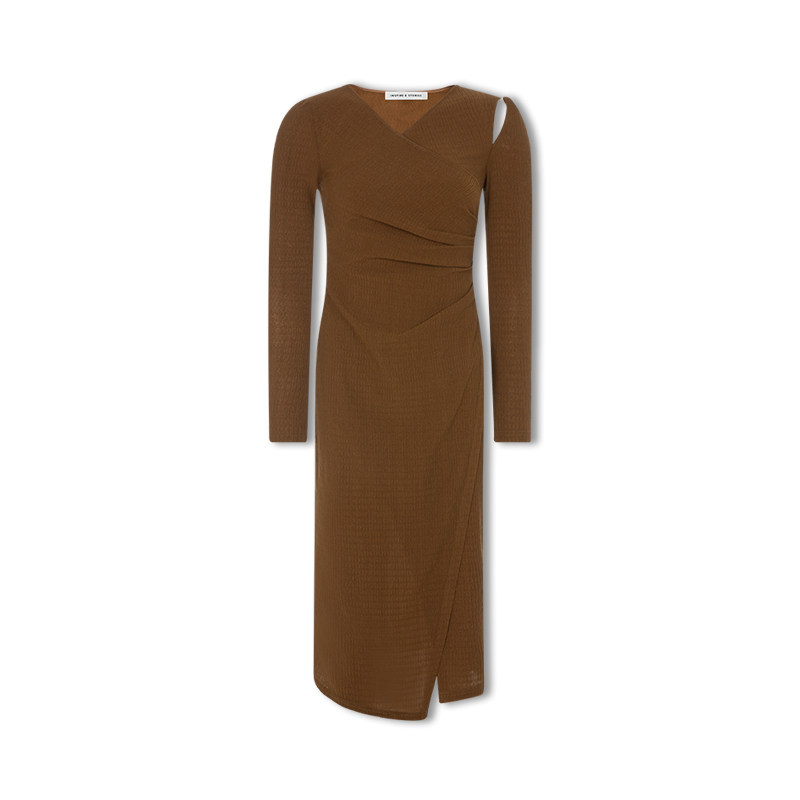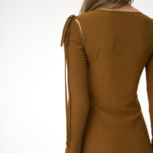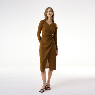 INSPIRE&STORIES女士收腰修身 连衣裙 V领日常通勤简约休闲长袖
