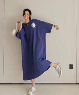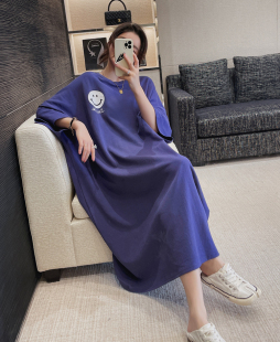 过膝连衣裙短袖 超大码 宽松中长款 新韩版 T恤长裙 胖mm300斤2026夏季
