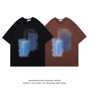 悟空有货街头嘻哈涂鸦印花短袖 tee T恤男潮牌宽松情侣休闲百搭半袖