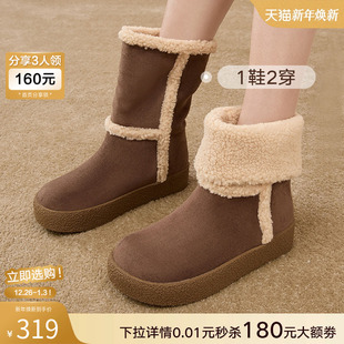 短靴M5311DZ4 厚底女大棉鞋 百思图冬新款 加绒加厚保暖雪地靴毛毛鞋