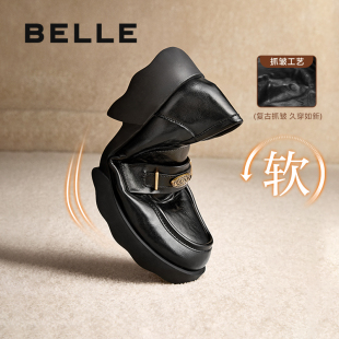 软底不累脚黑色小皮单鞋 子新款 女D2S1DCA5预 宝厚底乐福鞋 百丽元