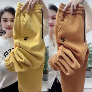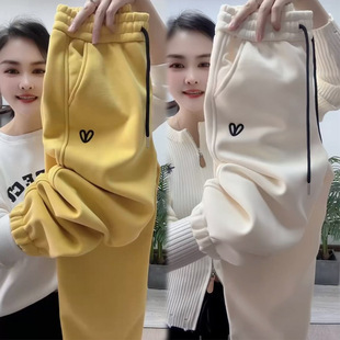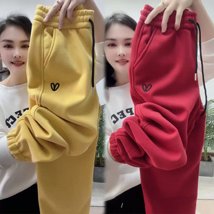 高腰百度休闲运动裤 加绒显瘦卫裤 宽松洋气束脚哈伦裤 新款 女秋冬季