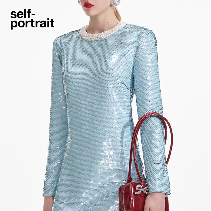 self 2025早春薄雾蓝千金风珍珠人鱼亮片礼服连衣裙 portrait