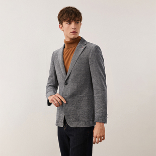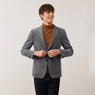 西装 花纹修身 外套男 海澜之家绒感弹力休闲西服男25秋冬新时尚 HLA