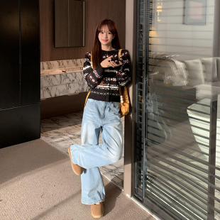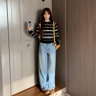 不贴腿显瘦阔腿拖地裤 橘子树在哪儿复古水洗蓝色牛仔裤 女春季