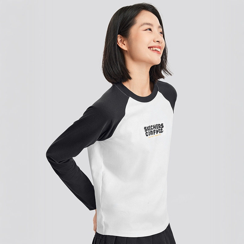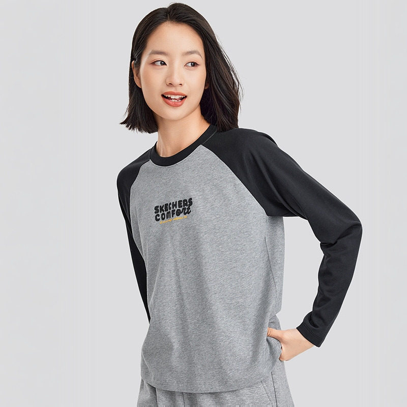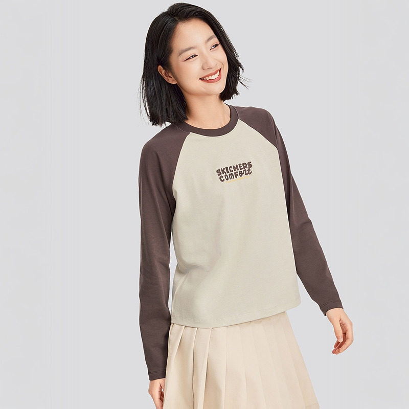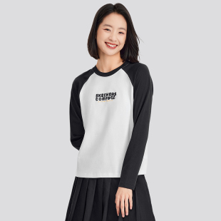 Skechers斯凯奇春新款 T恤 撞色插肩设计美拉德复古针织长袖