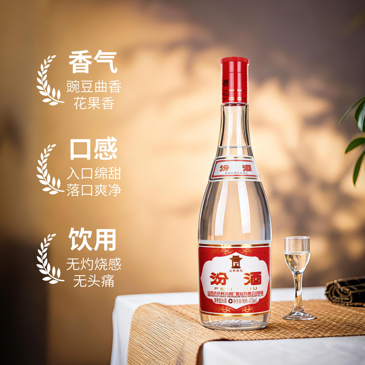 6瓶 42度红盖汾酒475mL 山西杏花村酒 光瓶玻汾 假一赔十