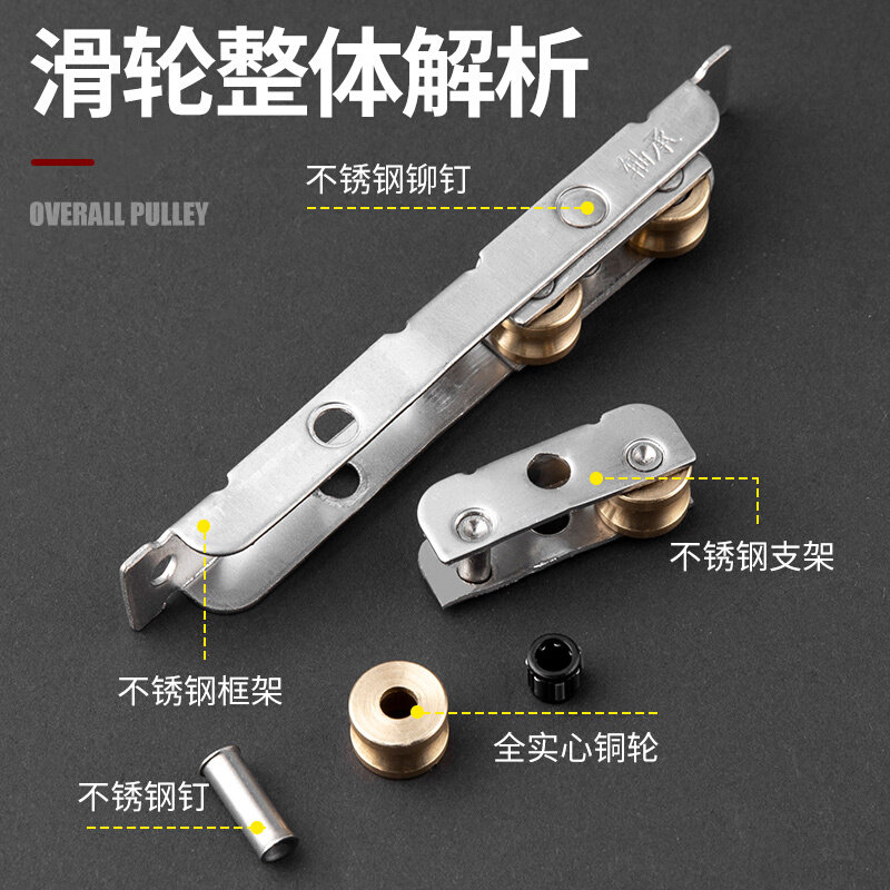移门滑轮不锈钢重型隔断门凹轮并排铜凸轮浴室推拉钛合金趟门轱辘
