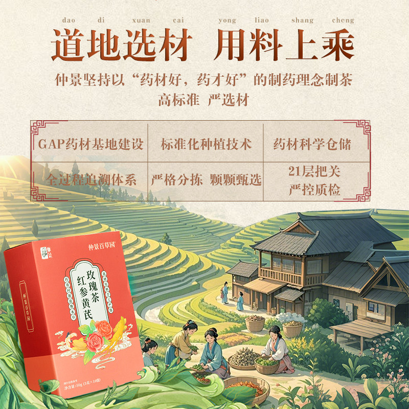 仲景红参黄芪玫瑰茶元 气茶枸杞熬夜双补女生养生补气养血玫瑰花茶