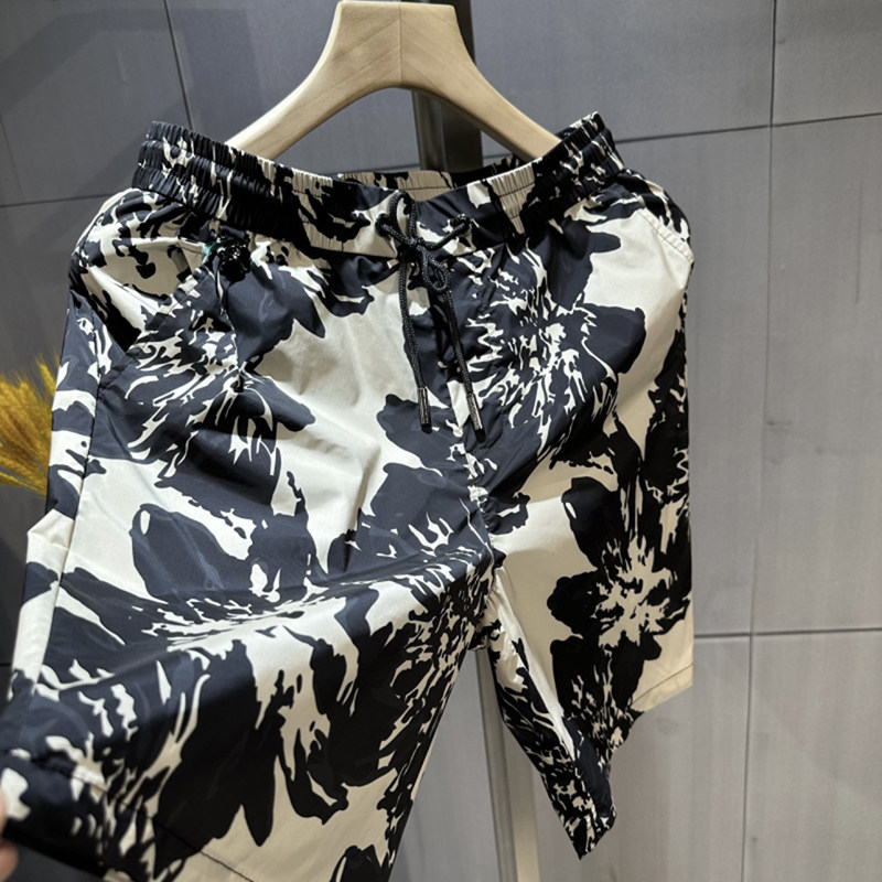 五分短裤 弹力宽松透气大裤 男士 潮流印花运动沙滩裤 衩 夏季 速干薄款