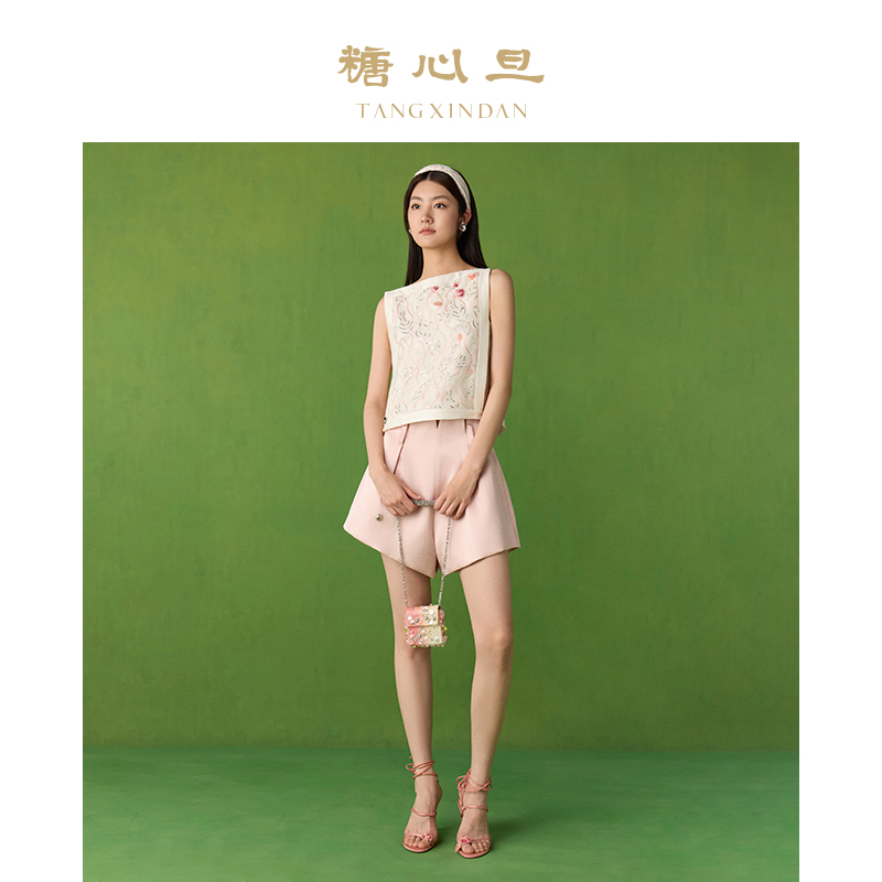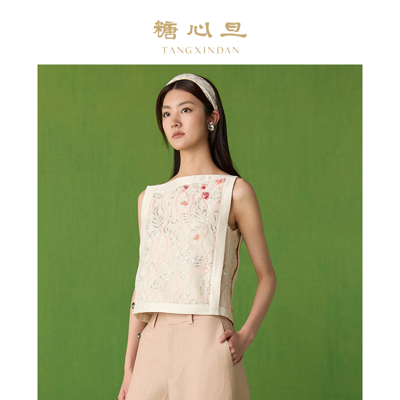 MIAOXIAOYAN法式 内搭外穿美背 骨线小吊带背心性感蕾丝含胸垫修身
