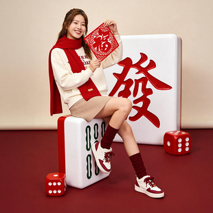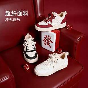 冬季 女鞋 新款 厚底增高板鞋 李宁布欧 圣诞节红色轻便运动鞋 休闲鞋