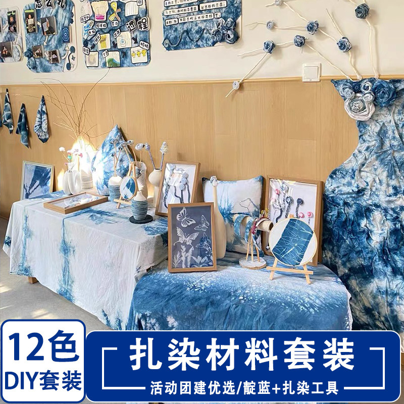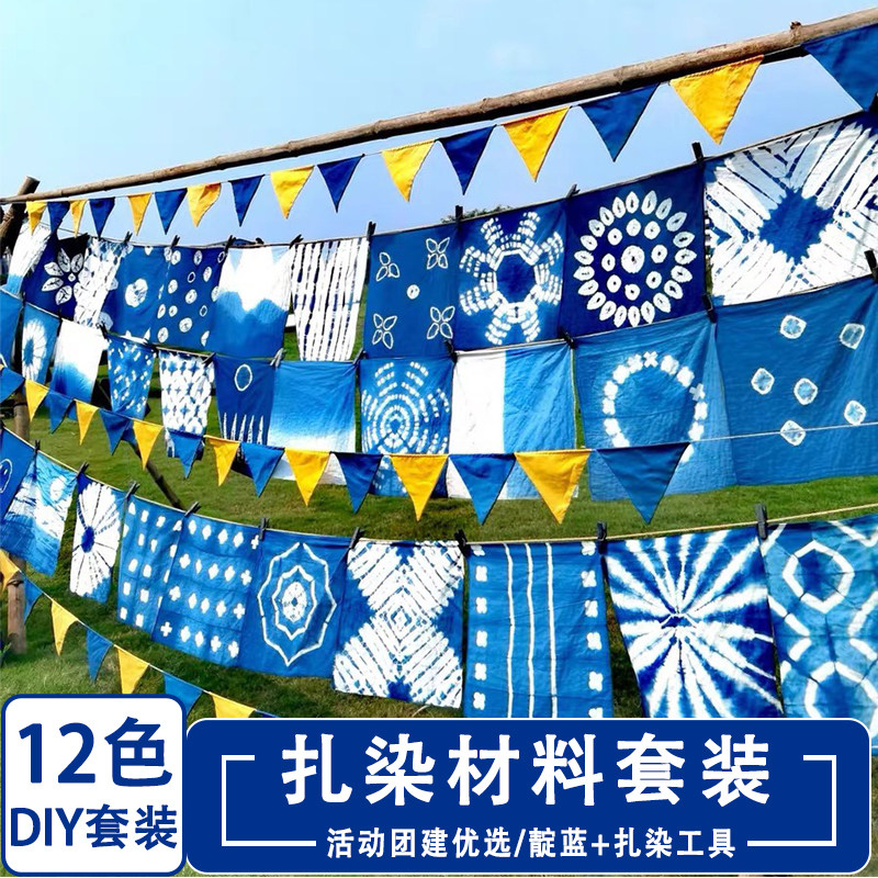 扎染颜料diy材料包方巾玩偶白胚布染料靛蓝儿童手工专用工具套装