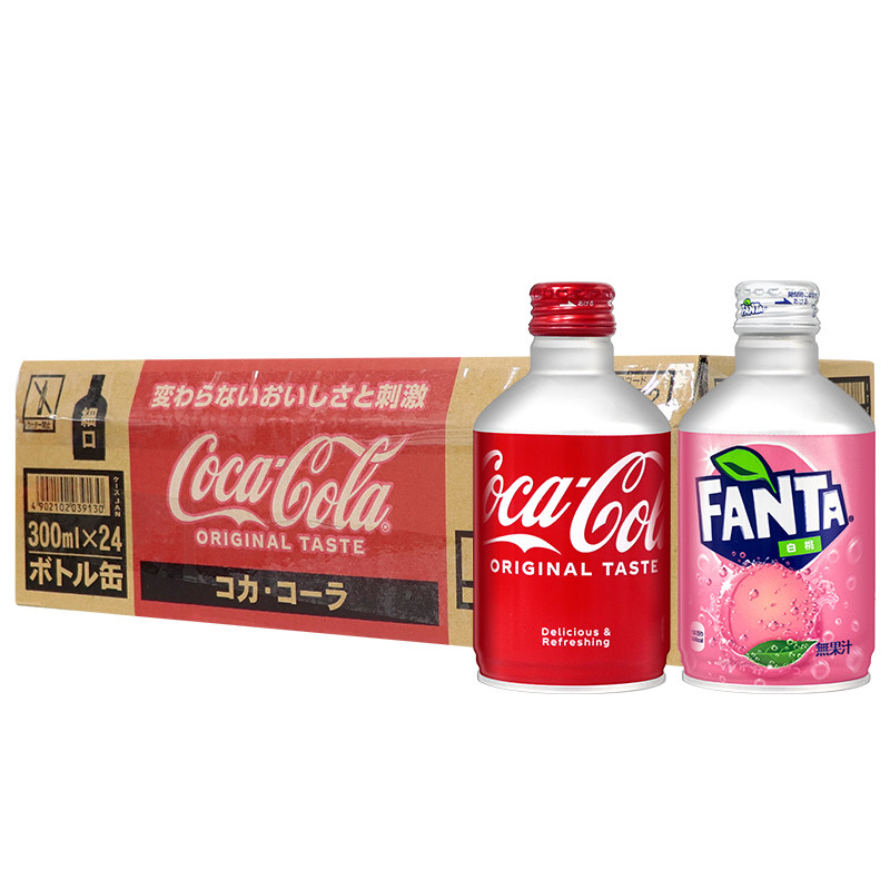 日本可口可乐子弹头可乐饮料300ml 6瓶铝罐碳酸饮料芬达白桃汽水