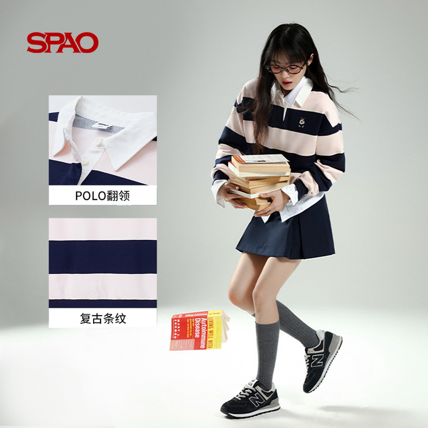 25年春秋女士小熊航海系撞色长袖 SPAO韩国同款 卫衣 WOODIE系列