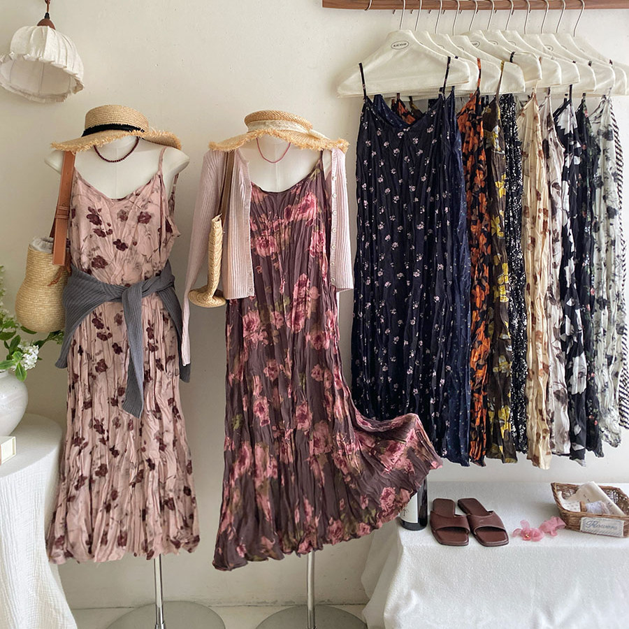 清仓不退假风碎花吊带长裙女夏季 宽松藏肉外穿内搭复古印花连衣裙