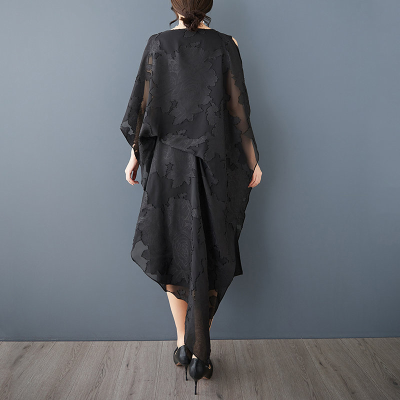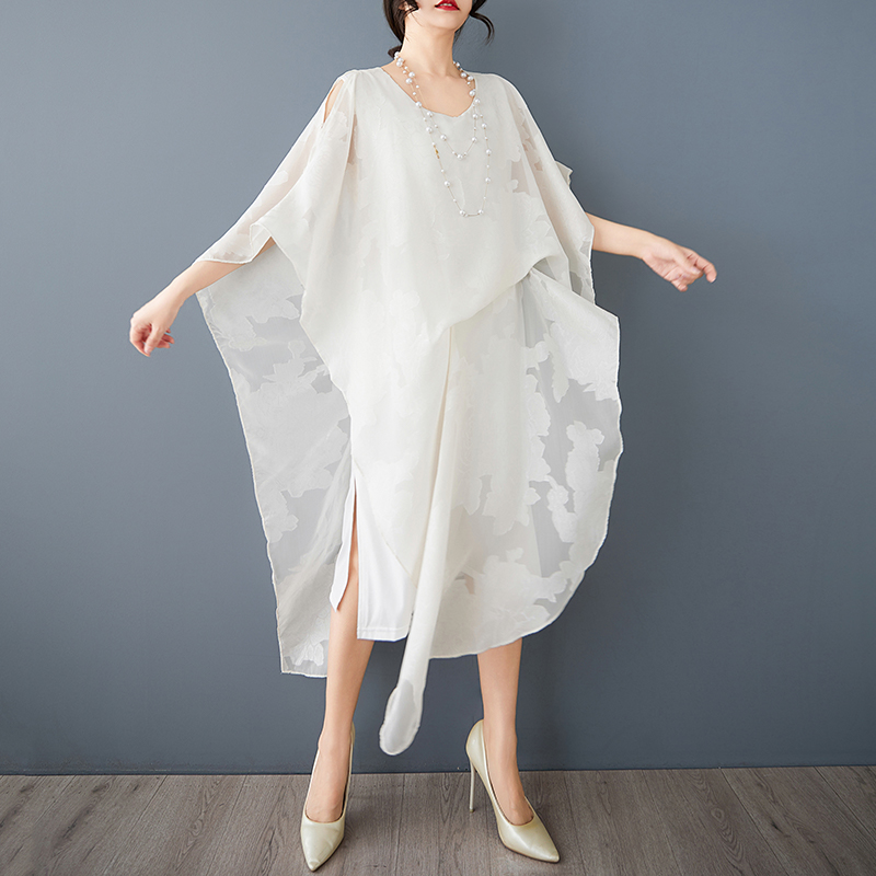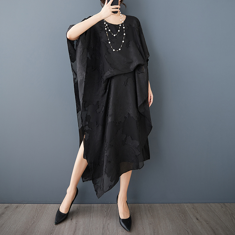 遮肉连衣裙 高端不规则连衣裙百搭大码 外贸出口夏新款 国风提花时尚