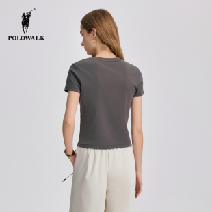 休闲百搭打底衫 POLOWALK女式 新品 圆领T恤夏季 潮流上衣 短袖