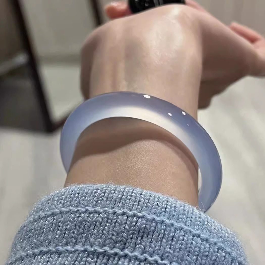 天然高冰透白月光玛瑙荔枝冻玉髓玉手镯马料香槟翡翠平安镯送女友