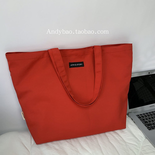 红黑色超轻便折叠尼龙帆布单肩包包男女百搭大容量瑜伽宝妈托特包