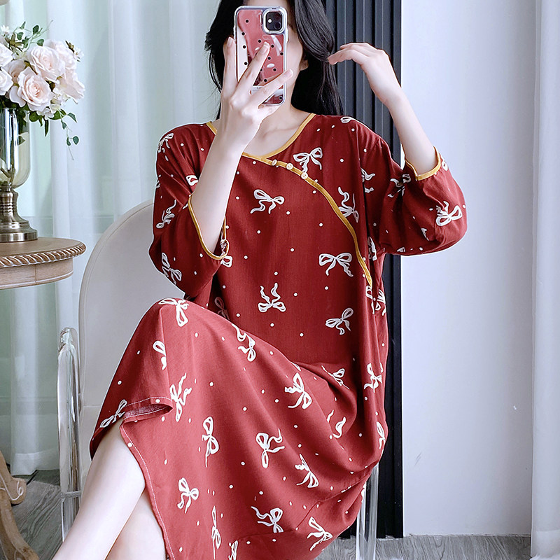 红豆居家睡衣纯棉家居服短袖 女士春秋款 清仓 睡裙特惠夏季 断码