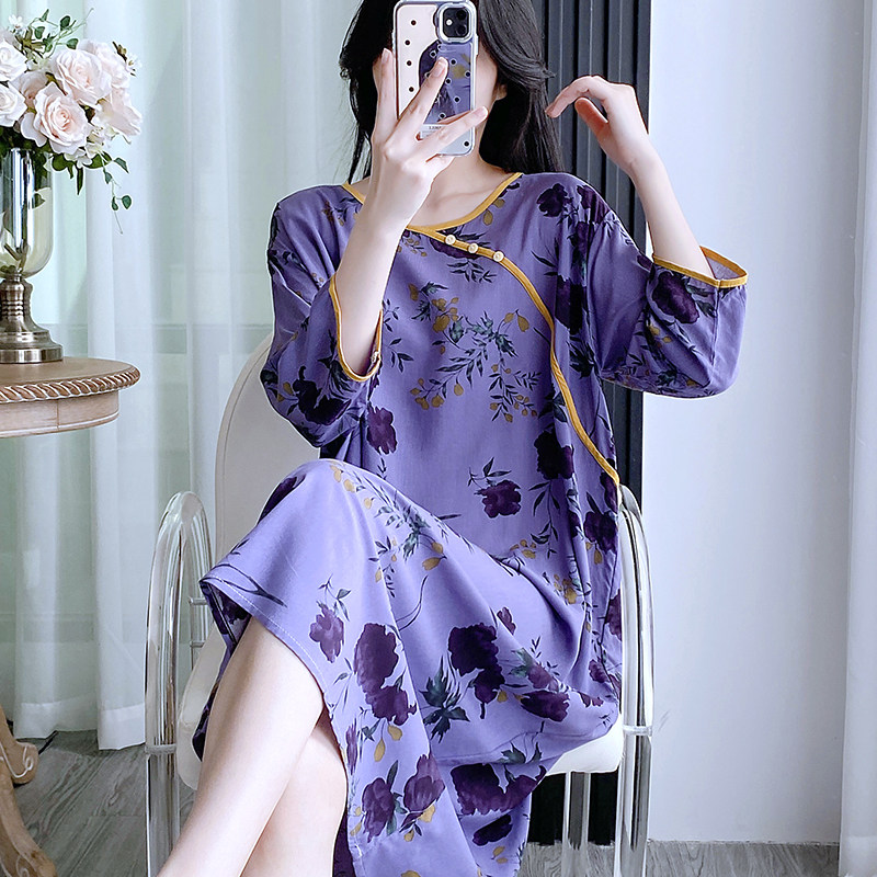 连衣裙宽松睡衣家居服 甜美A类纯棉短袖 俞兆林7A抗菌睡裙夏季 女款