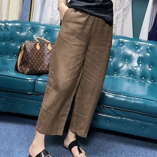 浅色糯米休闲裤 子 女秋冬加绒胖妹妹mm高腰宽松显瘦梨型身材阔腿裤