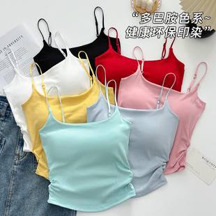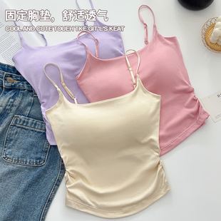 纯欲风褶皱设计感吊带背心女外穿内搭带胸垫修身 美背上衣2025新款
