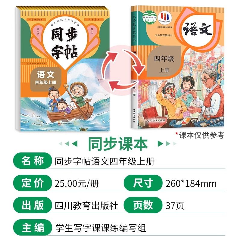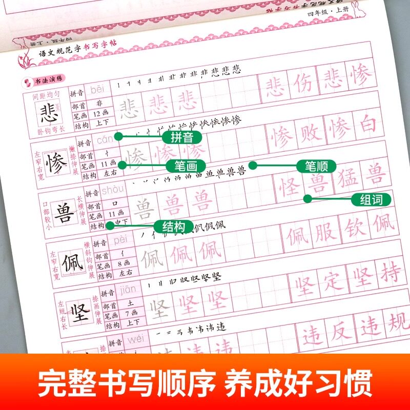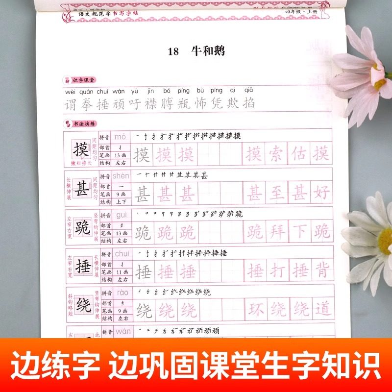 四年级上册下册语文同步字帖正楷体人教版 练字帖小学生专用笔画笔顺生字描红本课课练字贴小学每日一练硬笔楷书控笔训练
