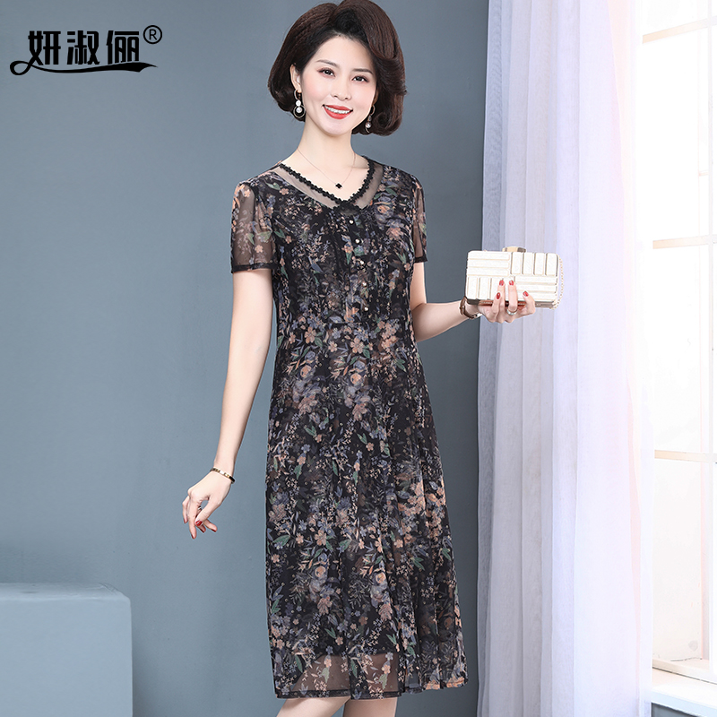 台湾纱气质裙子女 高端贵夫人品牌大码 中年妈妈夏装 连衣裙2023新款