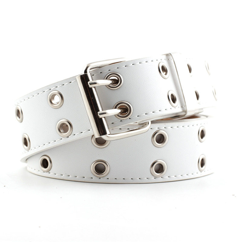 带全孔白色浅粉 辣妹多巴胺皮带宽粉色粗裤 夏季 小众设计感腰带女款