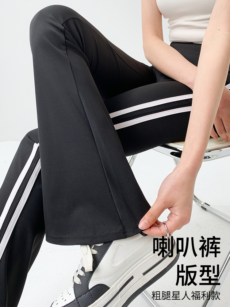女2023新沙鱼瑜伽裤 微喇叭鲨鱼健身裤 外穿打底运动三条杠秋冬新款