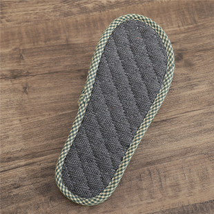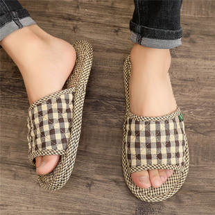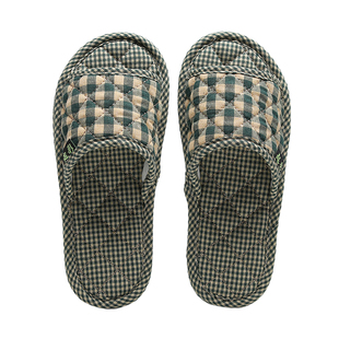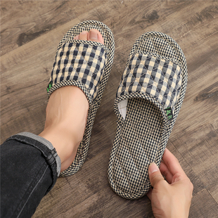 新款 纯棉软底男女情侣简约格子居家静音布艺布底家居室内地板拖鞋