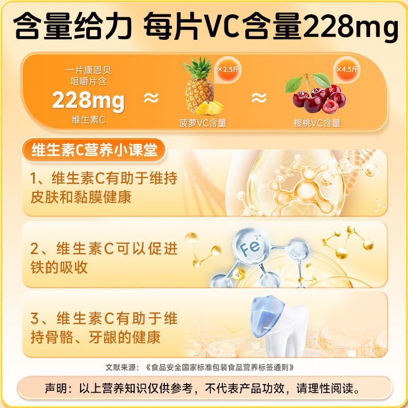 100片康恩贝vc片维生素c咀嚼片维c正品 官方旗舰店复合维生素b族ve