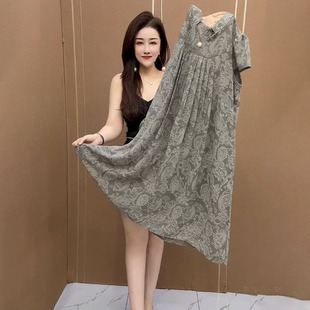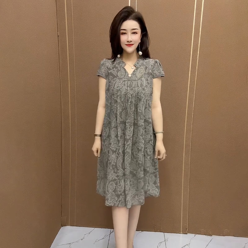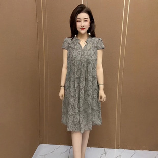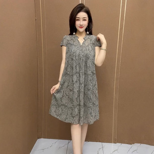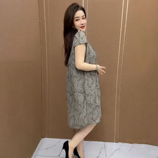 优雅气质减龄裙子 短袖 高档中年妈妈夏装 网纱碎花连衣裙女2025新款