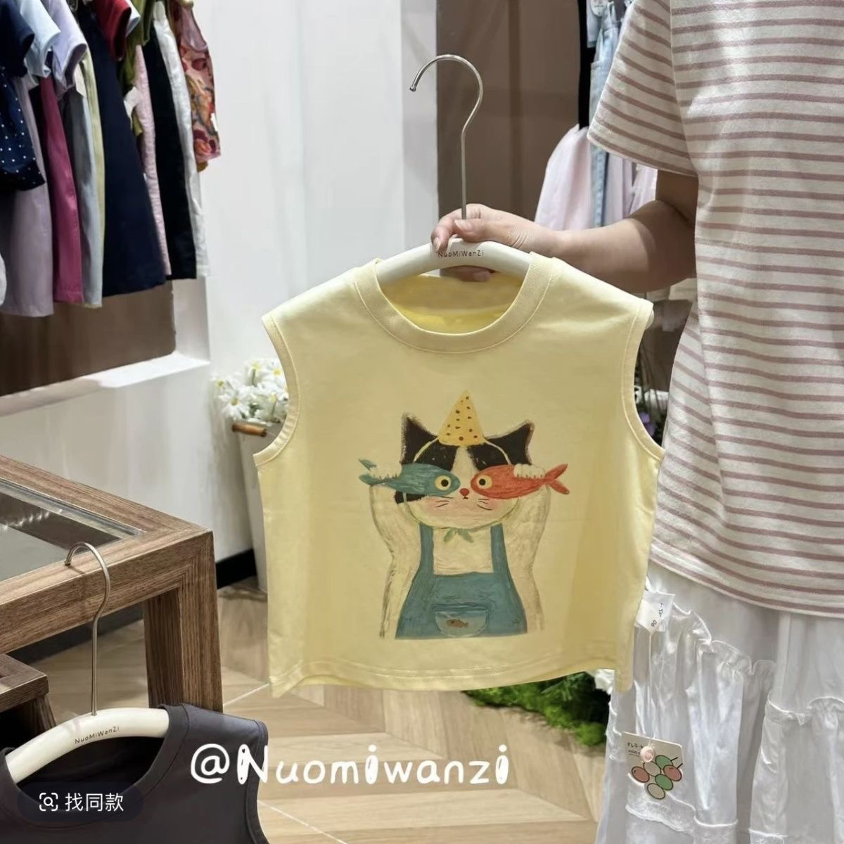 百搭T恤中小童卡通上衣 女童洋气时尚 夏季 男女童猫咪印花背心新款