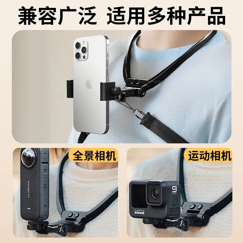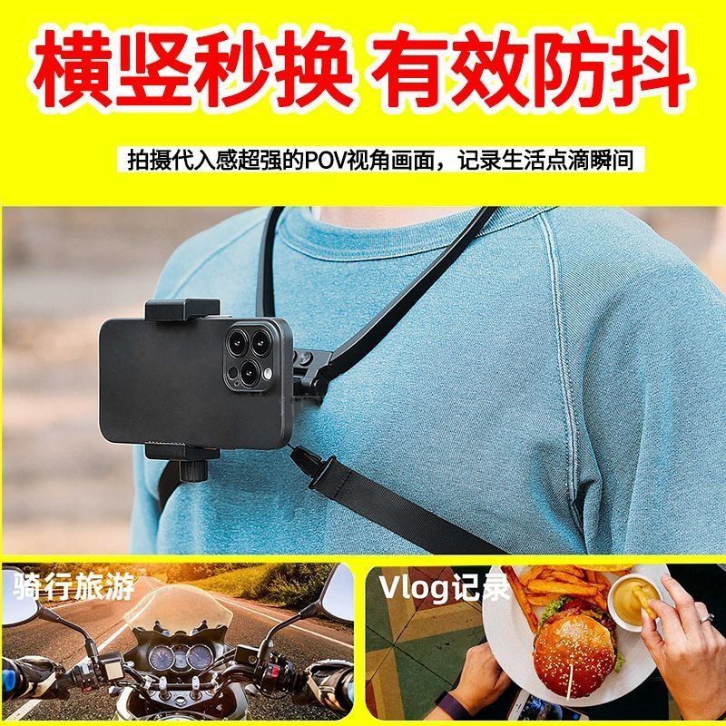 新款 支架钓鱼运动第一人称视角固定胸前穿戴拍摄防抖挂脖支架设备直播VLOG骑行懒人神器便携 适配手机挂脖子式
