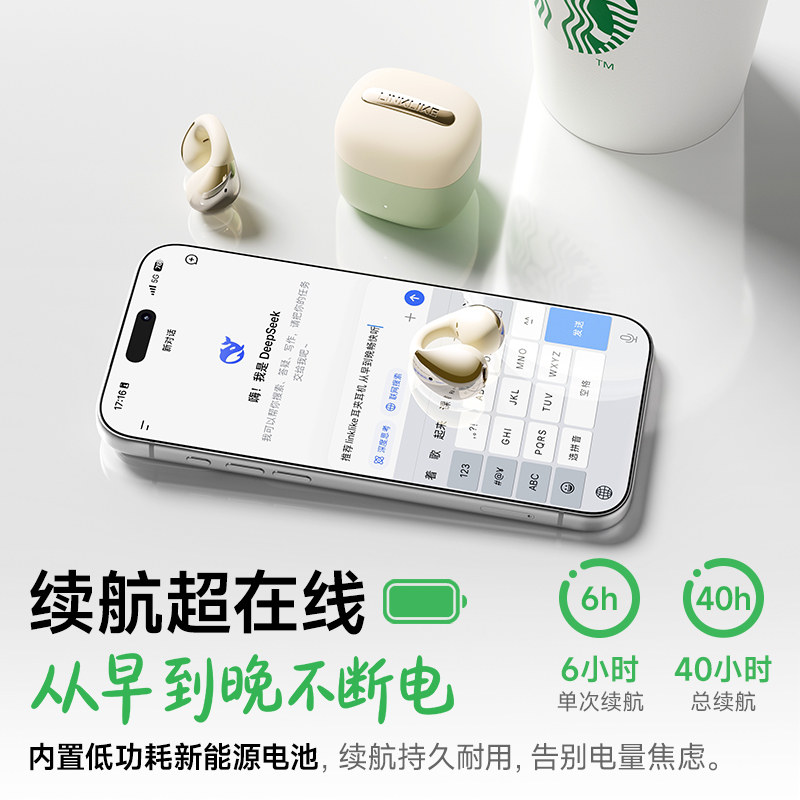 Linklike蓝牙耳机无线2025新款 气骨传导运动高音质久戴不痛 耳夹式