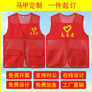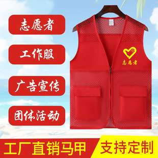 志愿者网格状马甲定制印logo渔网夏季 红背心义工网眼工作服广告衫