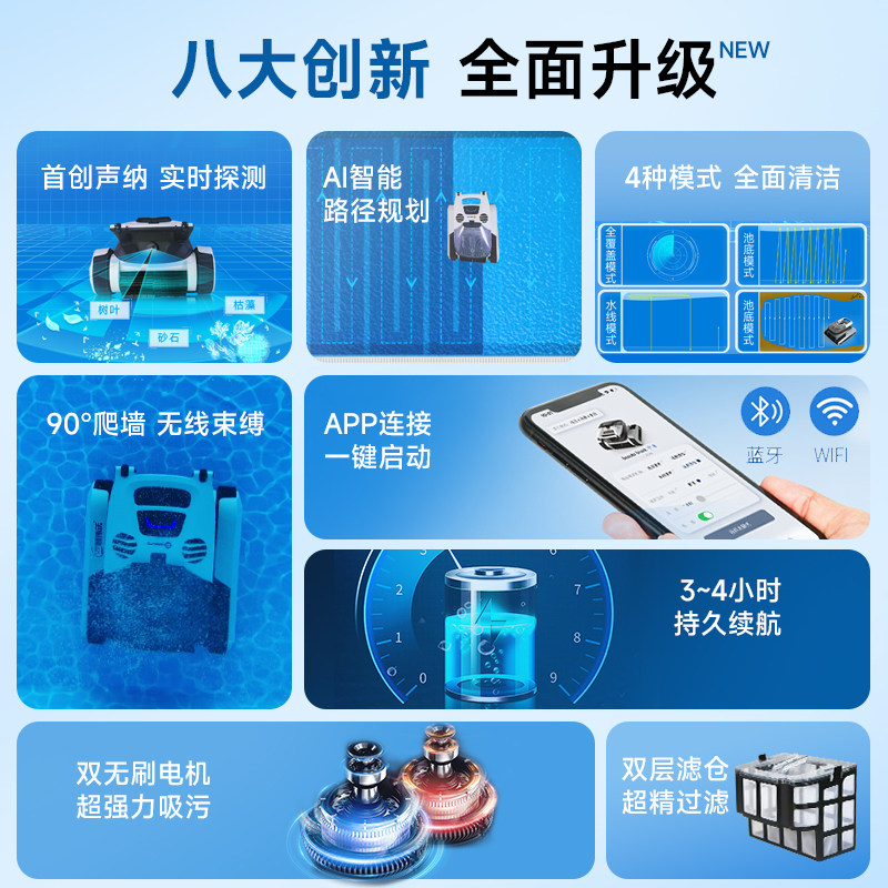 美国游泳池吸污机全自动清洁机器人过滤水龟池底部水下鱼池吸尘器