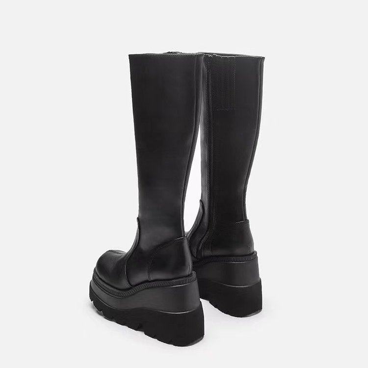 靴皮靴 时装 吴宣仪天美意千金靴复古厚底骑士靴加绒长靴女鞋 子新款