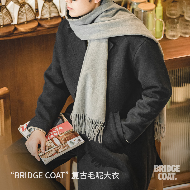 外套男春装 复古重磅羊毛呢子大衣克苏鲁文职中长款 美式 马登工装