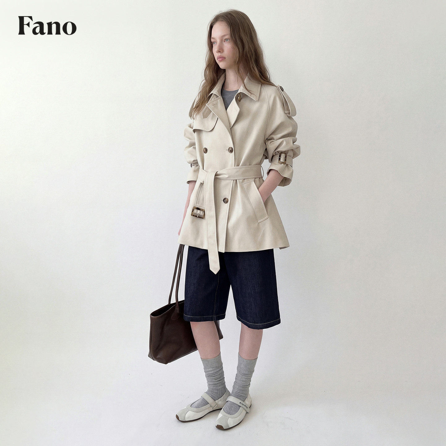 范洛Fano复古经典 风衣外套女小个子 廓形老钱风肩章可拆卸气质短款