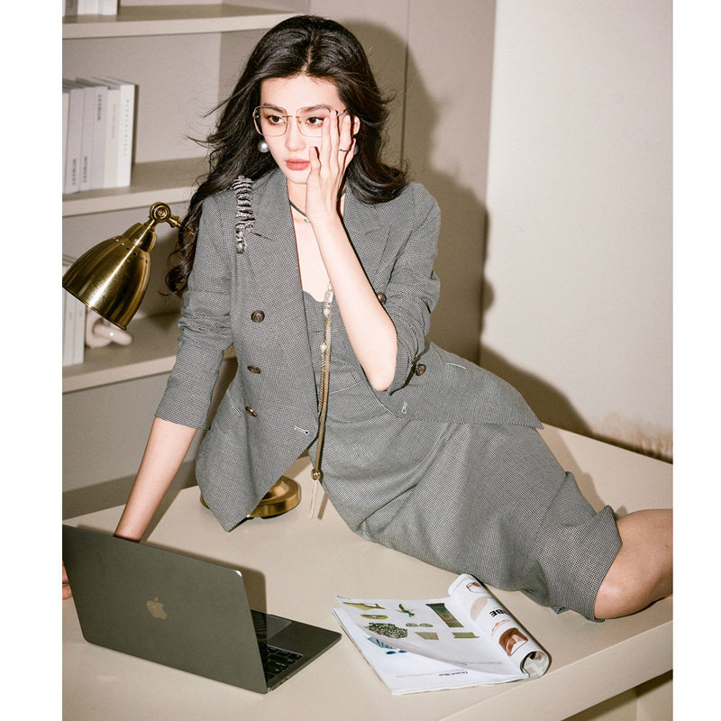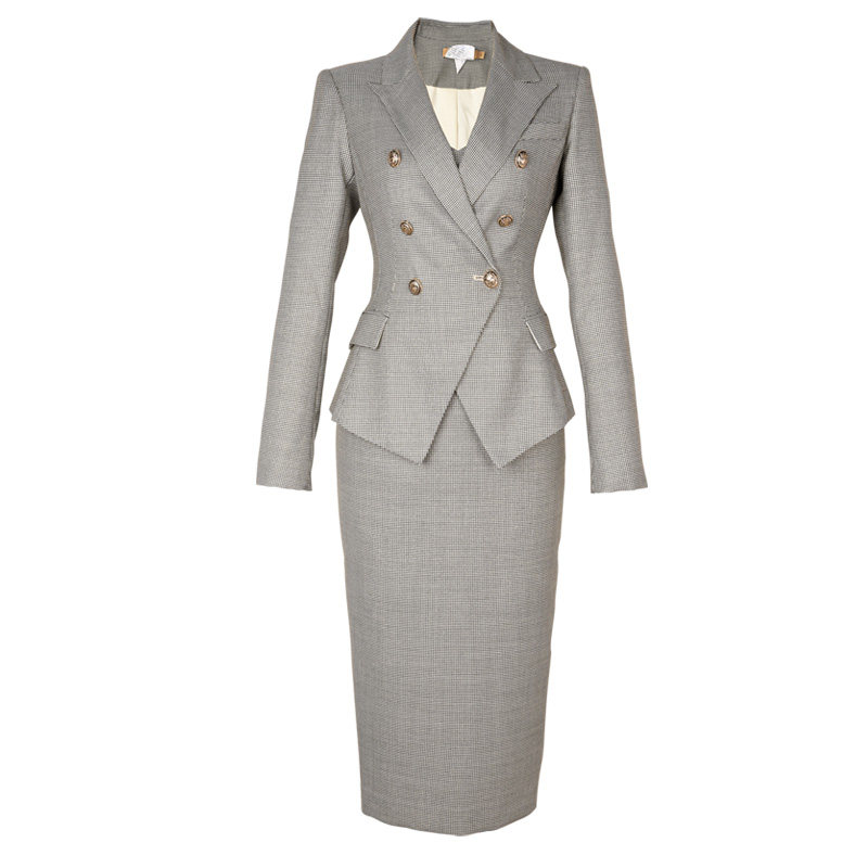 女士千鸟格职业装 颈袖 OL修身 职业裙子时尚 套裙 添香春秋新款