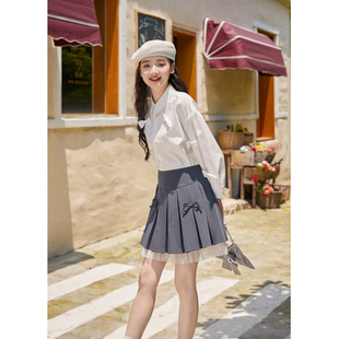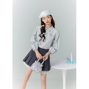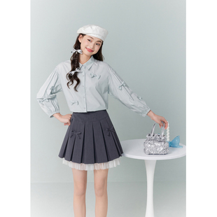 休闲宽松显瘦七分袖 新款 纯棉衬衣上衣 女秋季 紫涵翻领蝴蝶结衬衫